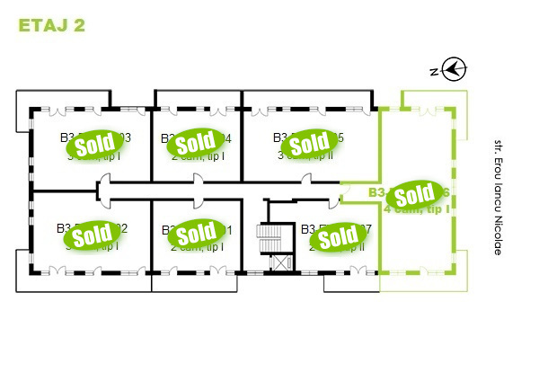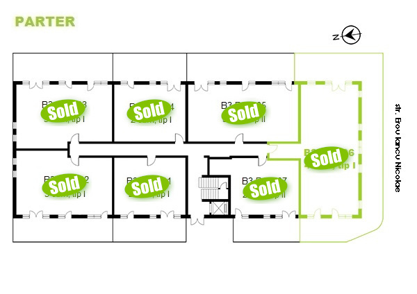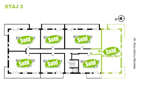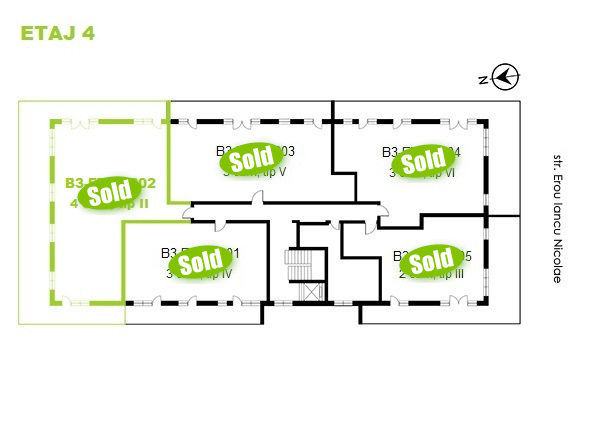 Apartments with 4 rooms available on each floor in the new building B3. Click on the apartment number marked in green to view interior. The apartments marked with SOLD are no longer available.
